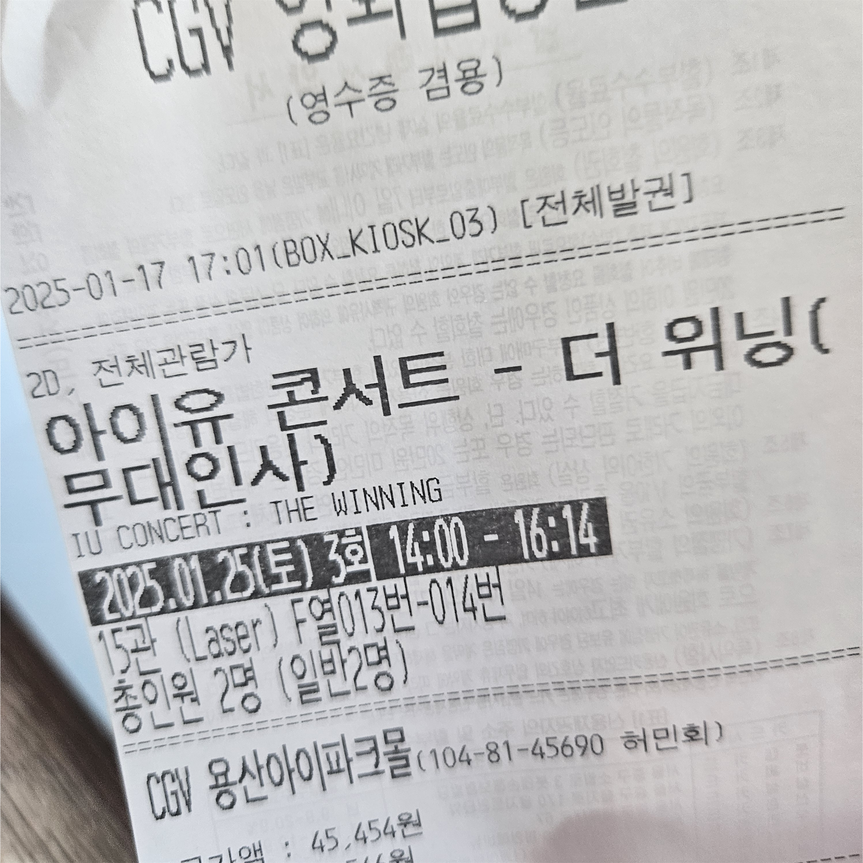 나는 학교 근처 CGV를 갔고 조금 변두리? 영화관이여서 그런지 다행히 키오스크2대에 나랑 한 분만 아이유 티케팅을 하셨다