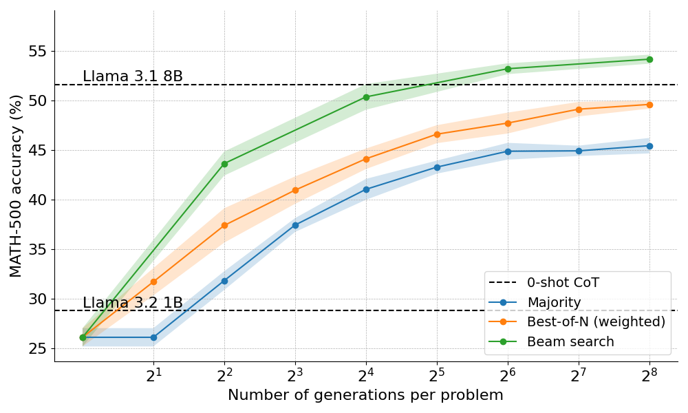 - 예시) 1B와 3B Llama Instruct 모델이 8B와 70B 모델보다 MATH-500 벤치마크에서 더 높은 성능
