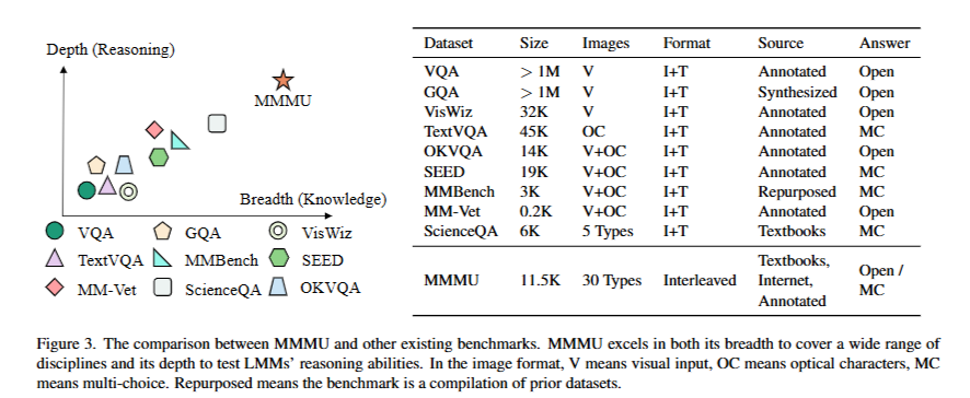 - 특히, 전문가 수준의 시각적 지각 능력과 주제별 지식을 이용한 심도 있는 추론을 요구하는 도전을 강조