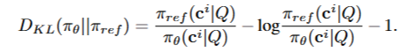 - KL divergence: 정책 모델을 정규화하여 참조 모델에서 과도하게 벗어나는 것을 방지