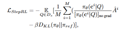 - 목표: 이전 상태를 기반으로 더 나은 작업을 선택하여 추론 품질을 향상시킬 수 있도록 정책 모델 $\pi_{\theta}$를 최적화하는 것