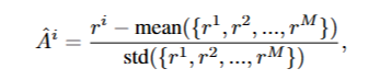 - 그룹에 대한 상대적 보상 정규화 (수식 위 참고)