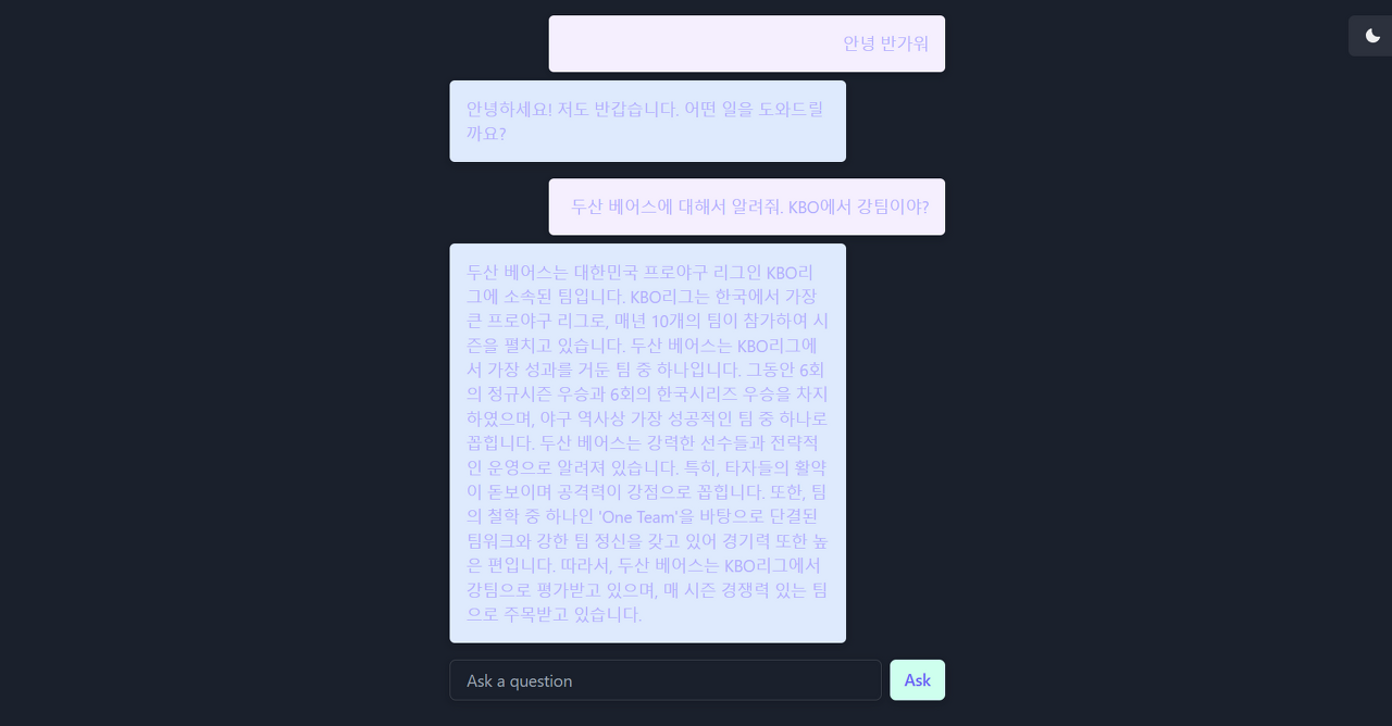 # qa 함수: 챗팅을 입력받은 뒤 각 챗팅을 질문, 박스 안에 개별 박스로 만들고,