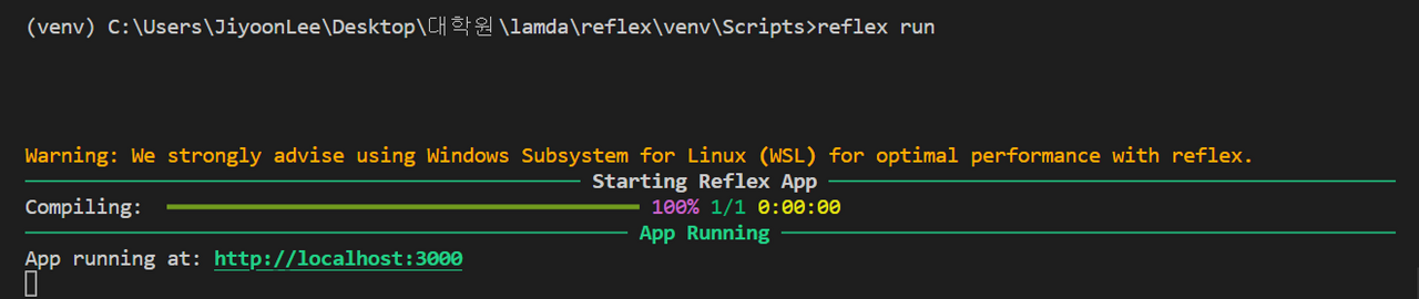 - 프론트엔드는 vercel을 통해 띄우는데, 백엔드는 안돼서 위와 같이 vs code에서 reflex run을 함