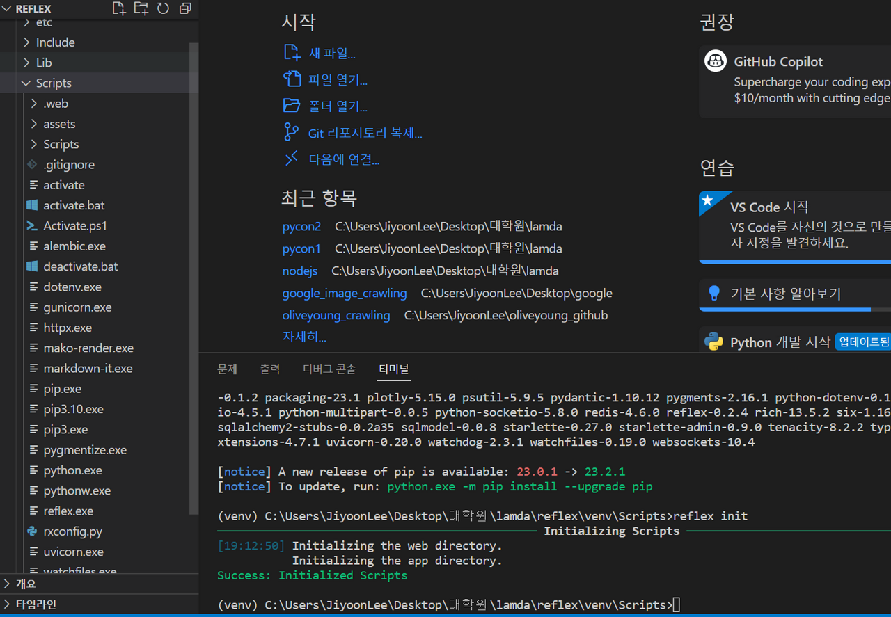 튜토리얼 2개를 들었는데 모두 reflex (구 pynecone) 수업을 들었습니다