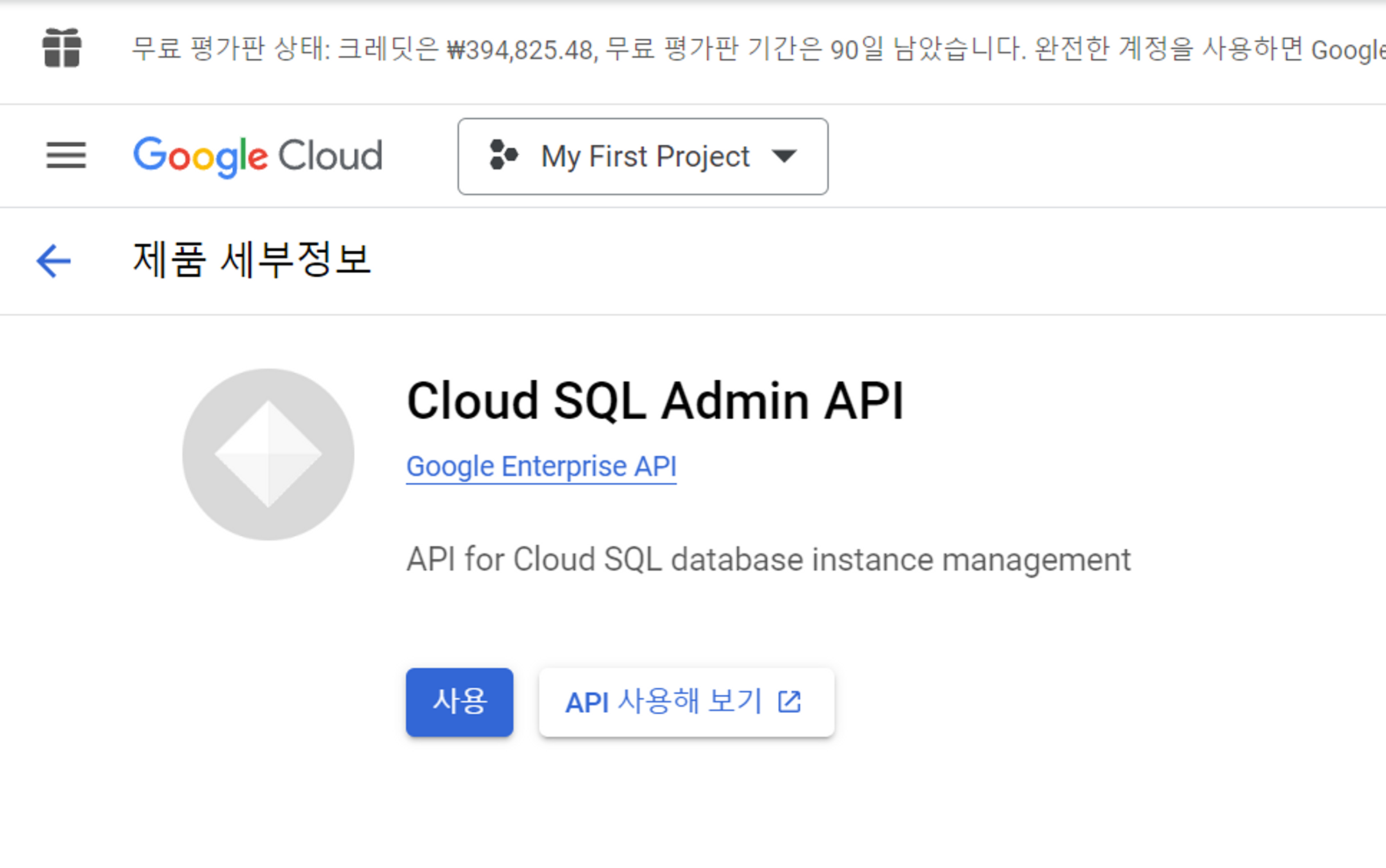 2. 검색 결과로 나오는 Cloud SQL Admin API를 클릭해서 "사용" 클릭해줍니다.