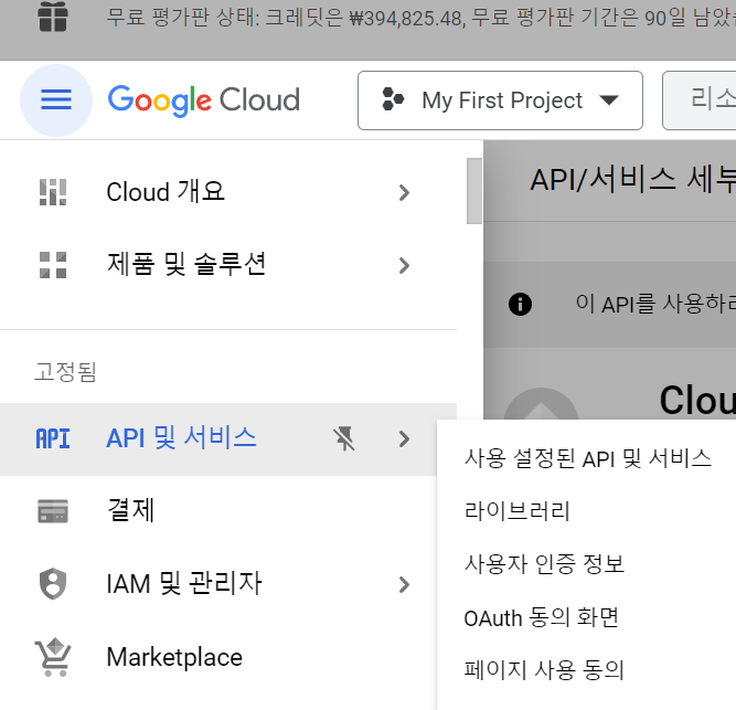 아마도 이전에는 저도 모르게 뜬 알림을 보고 API 활성화를 시켰나봐요