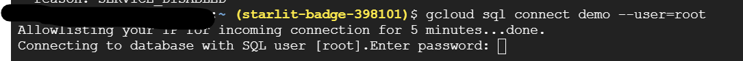이전에 GCP 썼을 때에는 아무 문제 없는데 새롭게 계정을 파고 cloud shell sql 연결 시도하려고 하니 위와 같은 에러가 떴습니다.