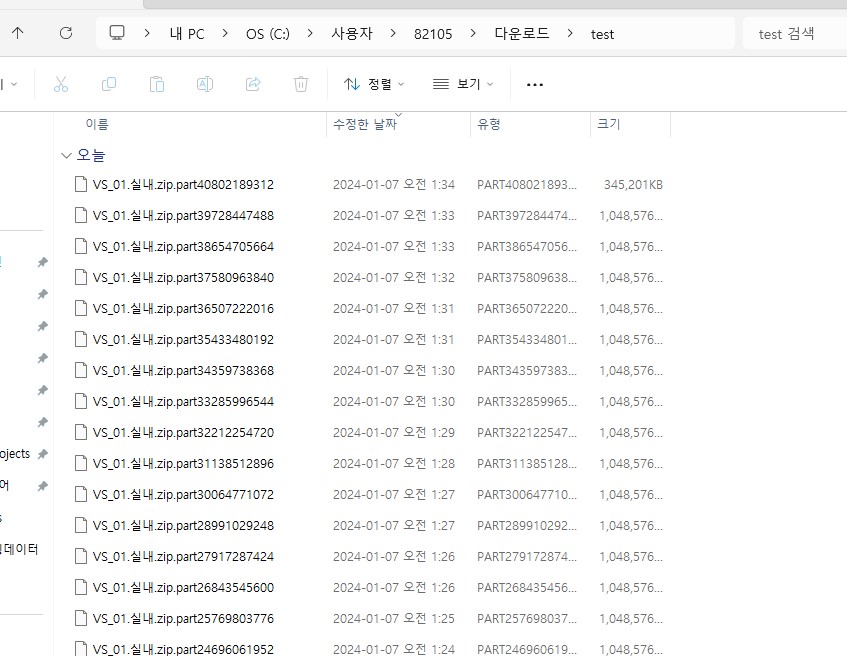 처음 다운한 download.tar 파일을 열어보면 파일 용량이 커서 여러 part 파일로 쪼개져있습니다.