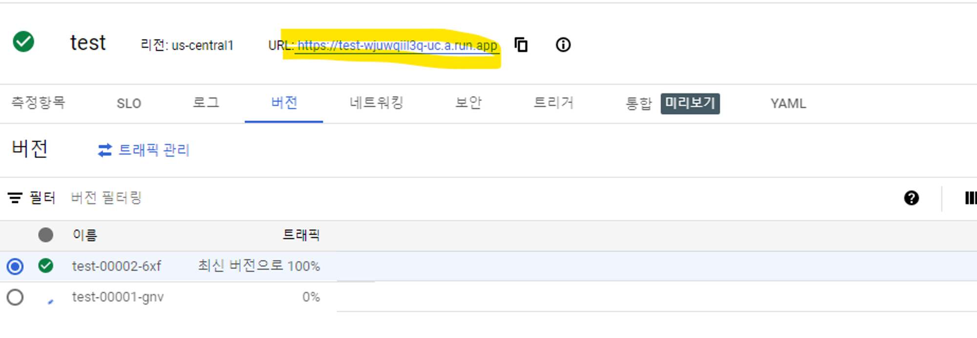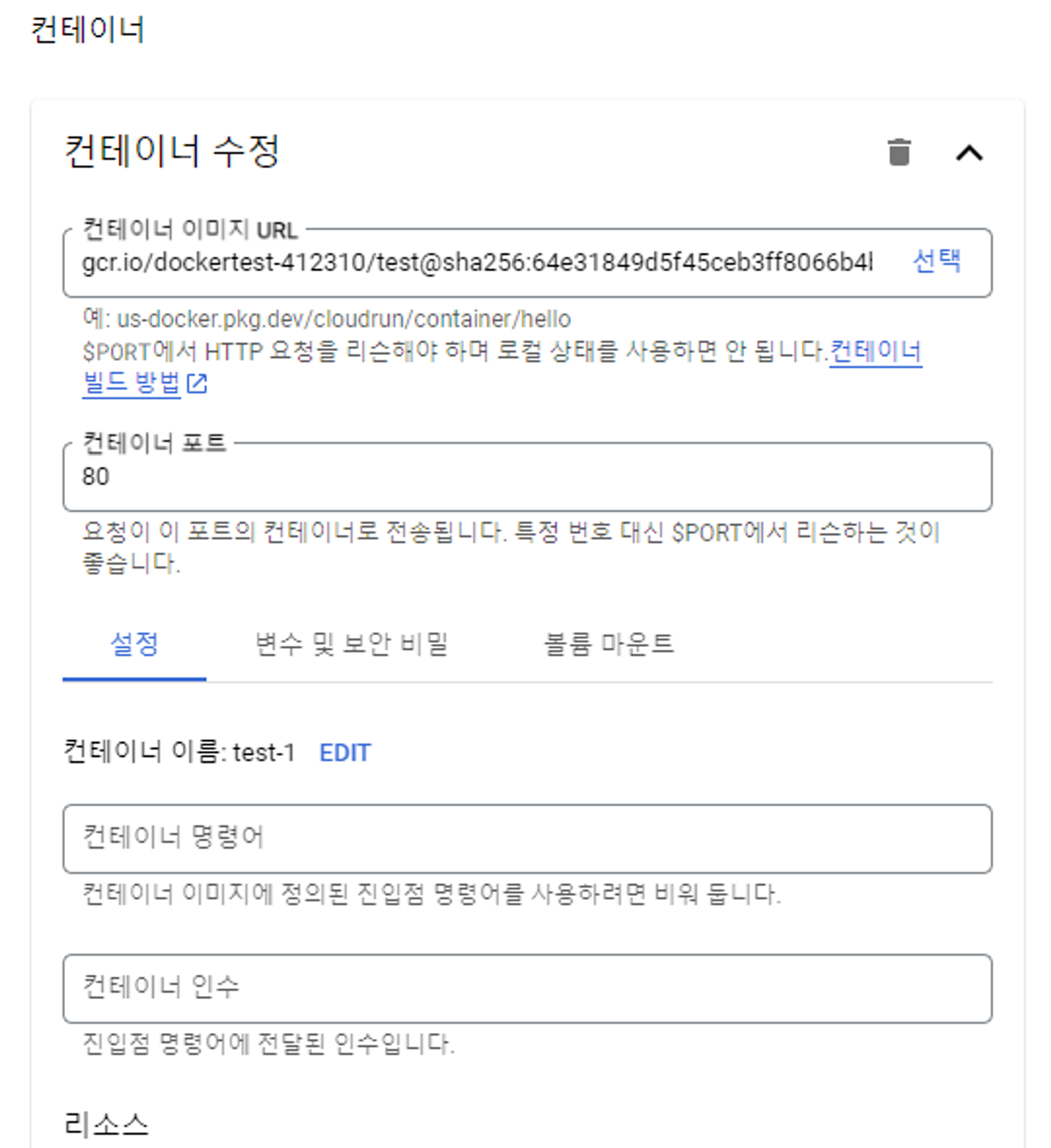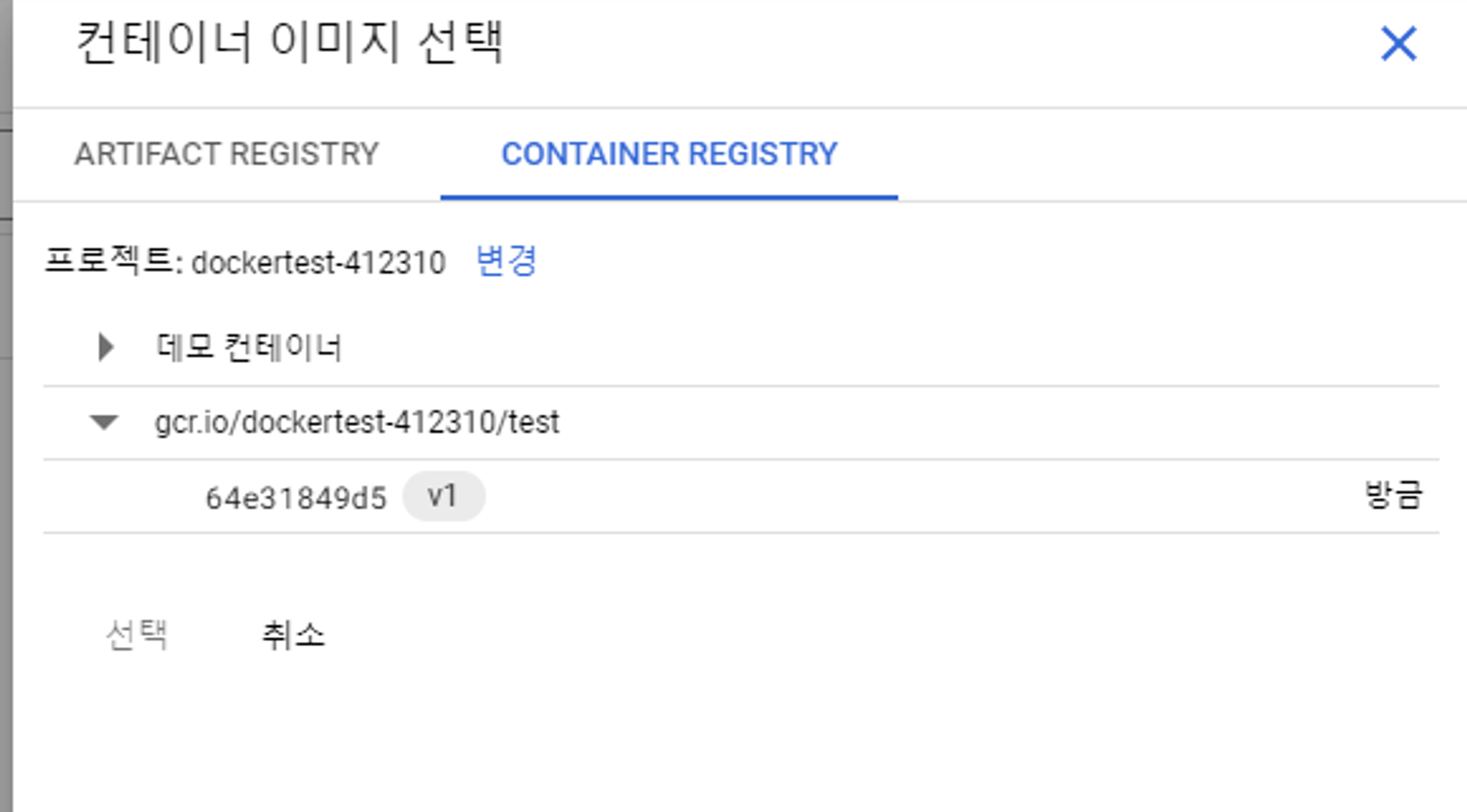 CONTAINER REGISTRY에서 배포한 앱, 버전을 선택하면 됩니다.