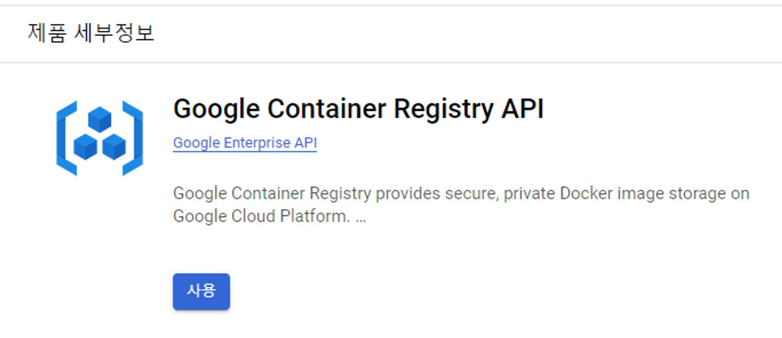 [API 및 서비스]에서 [+API 및 서비스 사용 설정] 에서 Google Container Registry API 사용 신청하였습니다.