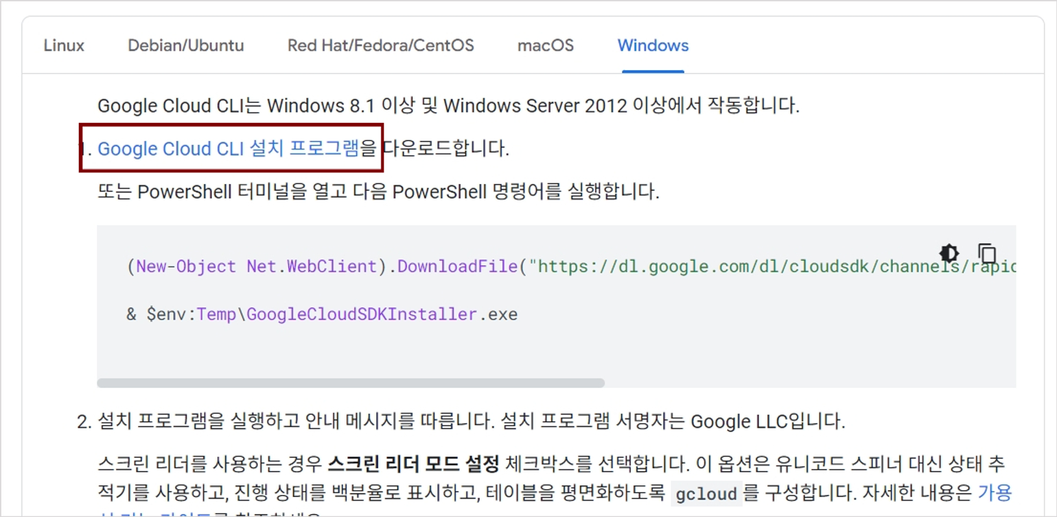 https://cloud.google.com/sdk/docs/install?hl=ko