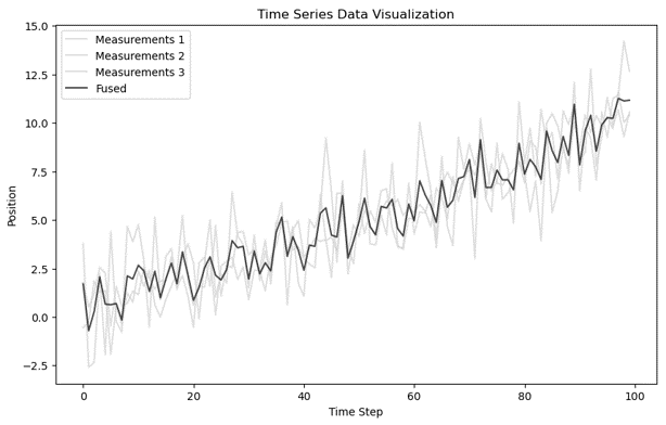 - 각 step(지점)마다 통합된 추정치 계산하여 시각화 (모든 스텝 공분산 교차 계산)