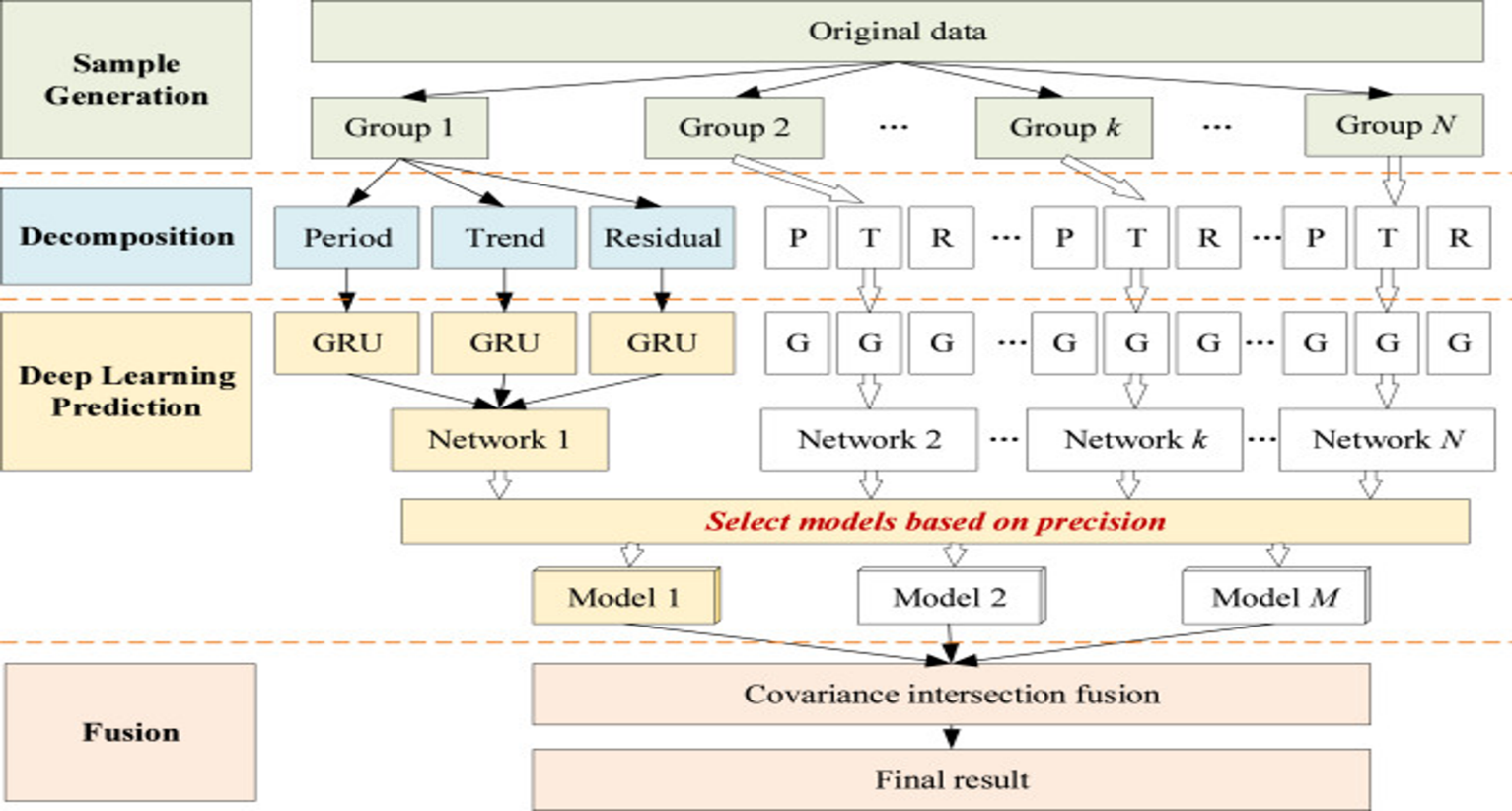 Parallel deep prediction with covariance intersection fusion on non-stationary time series