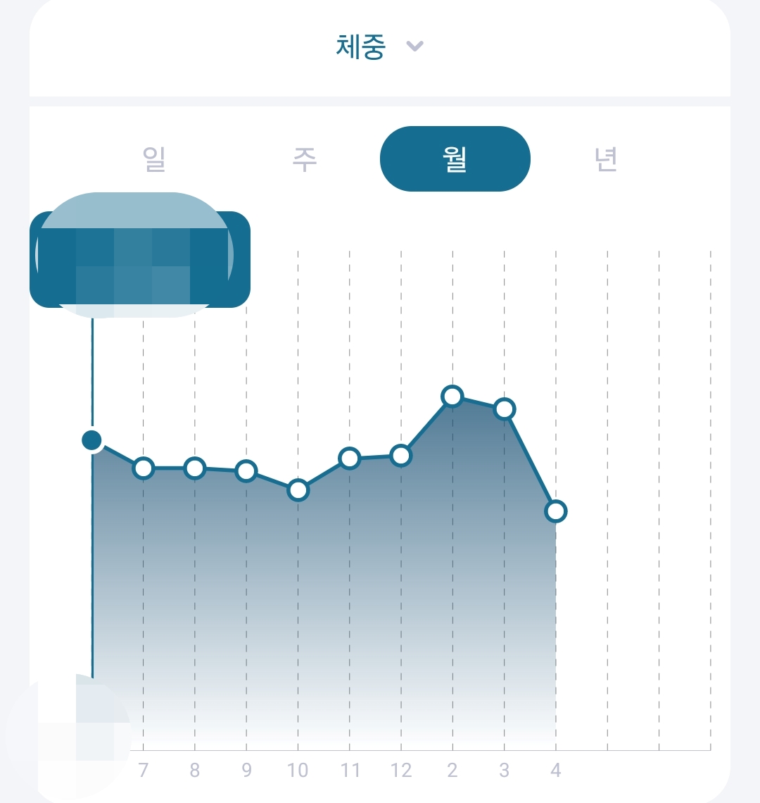 주 단위로 그래프 보려하면 기간(x축ㅎ) 글씨가 길어서 저렇게 한 눈에 안보이고 2개정도 밖에 안보인다 (UIㅎ..)
