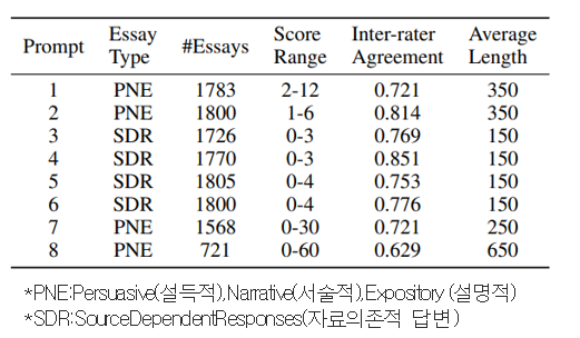 - 두개의 다른 데이터셋으로 단답형 ATS, 에세이형 ATS 평가