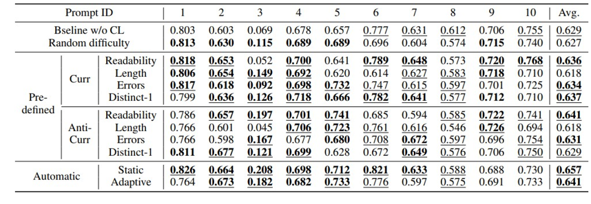 - Pre-defined, Automatic 난이도 측정기를 커리큘럼 학습(CL)에 활용했을 때더좋은 성능