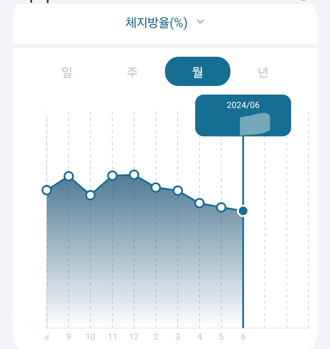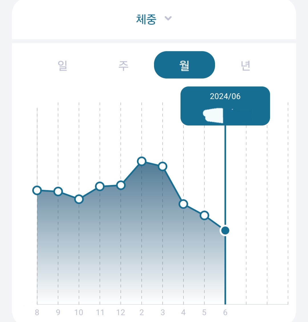 5월달에는 약간 정체기가 왔었는데 5월말부터 조금씩 다시 빠지는 중
