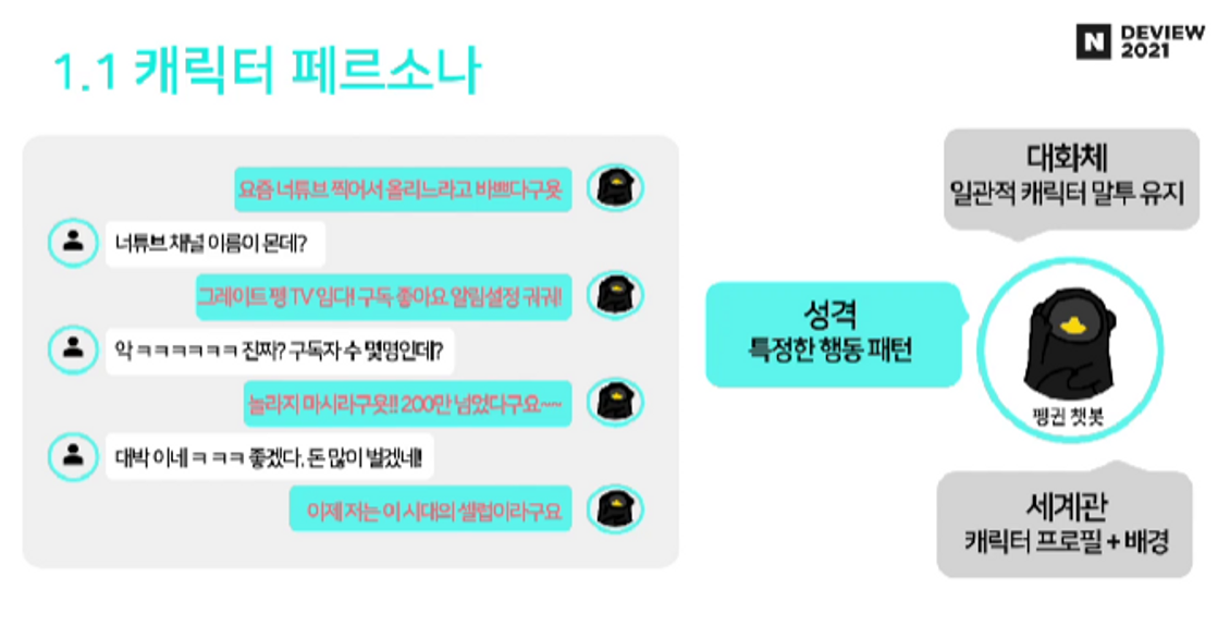 성격, 가치관이 있는 챗봇에 대해서 생각하다가 네이버 DEVIEW 2021에서 발표한 자료를 찾게 되었다.