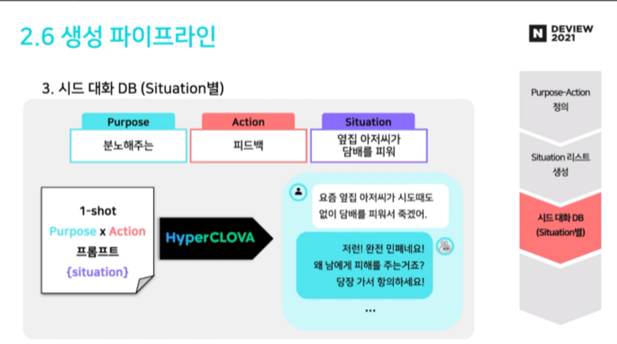 - Purpose, Action, Situation 에 따라 대화를 생성