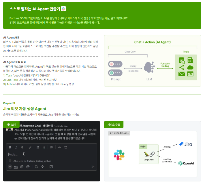 제가 들은 3차 공개 예정 강의에서는 슬랙, 지라와 같은 실제 서비스 툴에 랭체인을 접목시켰는데