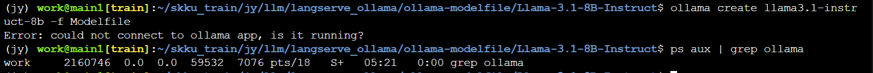 로컬에다가 설치할 경우, 그냥 바로 ollama create ~ 해도 되는데 서버에다가 설치할 경우에는, serve 과정이 필요합니다.
