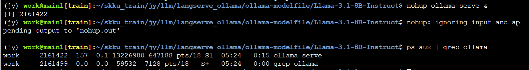 저는 Ollama 서버가 백그라운드에서 실행되도록 아래 명령어를 사용하여 가동시켜주었습니다.