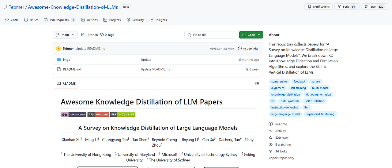 - Awesome + 주제 (LLM Distillation) + github 검색하기