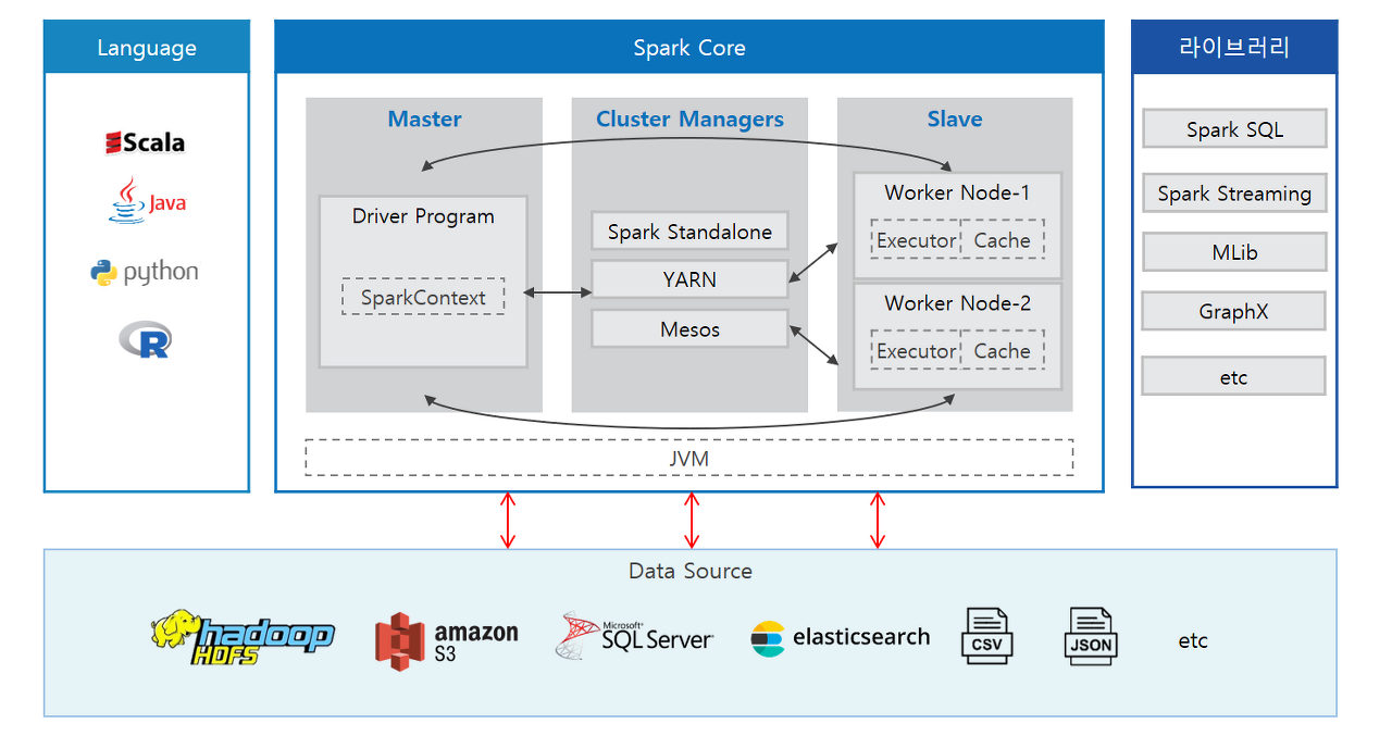 - API 인터페이스(자바, 스칼라, 파이썬, R 등) 기능 제공