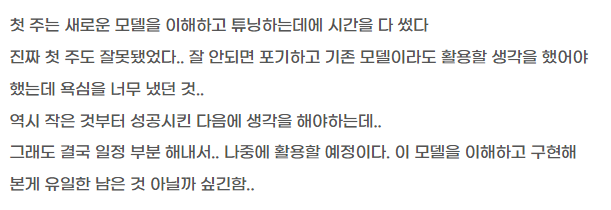 어느정도 고도화 포인트도 있고 큰 틀은 잡혀 있는 상태여서 큰 부담이 있지는 않은 상태..