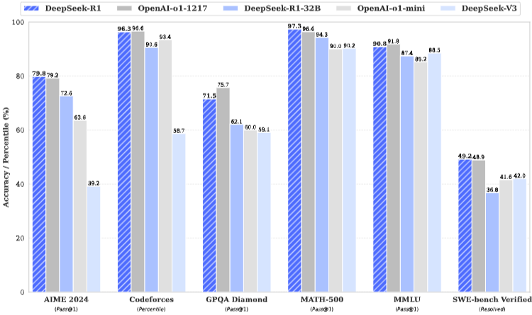 - DeepSeek-R1이 AIME 2024, MATH-500에서 뛰어난 성능