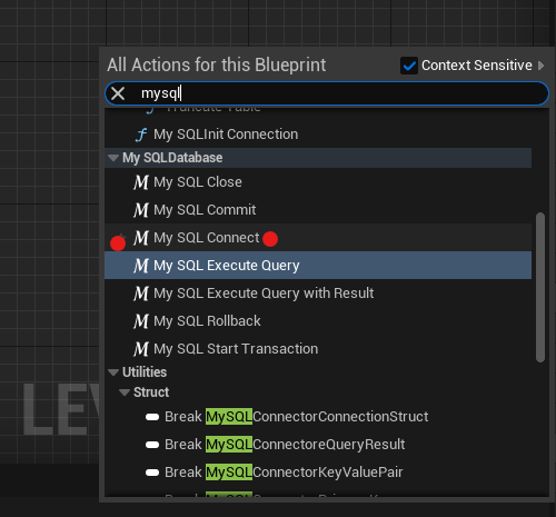 블루프린트에서 빈 곳에 [오른쪽 클릭] - [My SQL Connect] 클릭