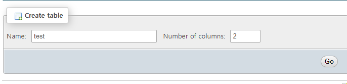 저는 test라는 이름의 테이블을 만들어줬고 2 row로 설정했습니다.