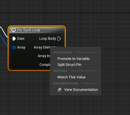 [For Each Loop] 의 [Array Element]에서 오른쪽 클릭한 뒤 [Split Struct Pin]을 눌러주면 [Array element fields]로 변경됩니다