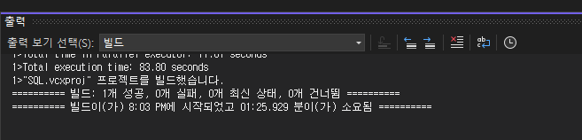 우측에 (보통 우측에 있음) 있는 솔루션 탐색기에서 [SQL 파일을 오른쪽 클릭] - [빌드] 클릭