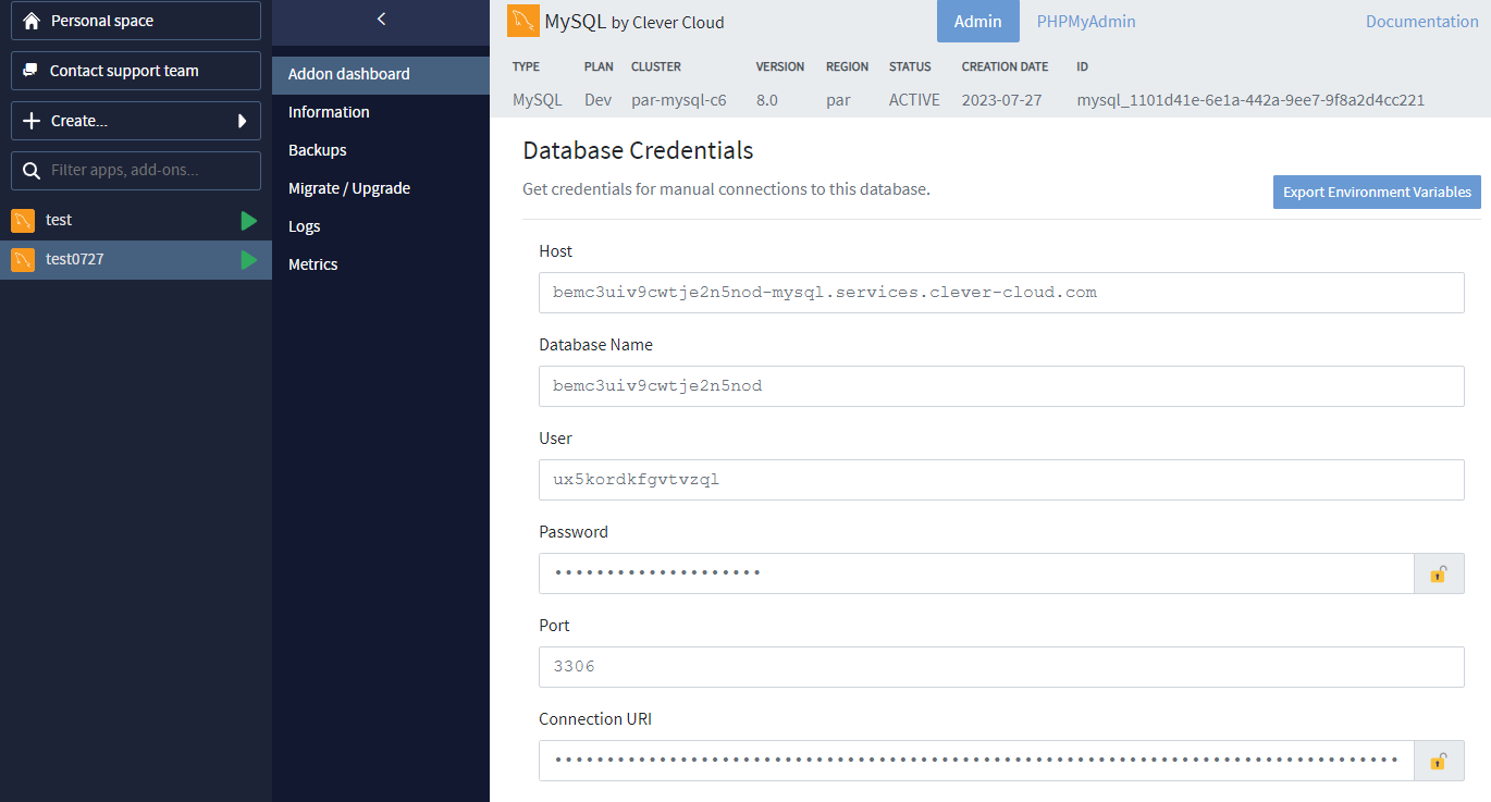 5. Clever Cloud 랑 mysql connect 연결